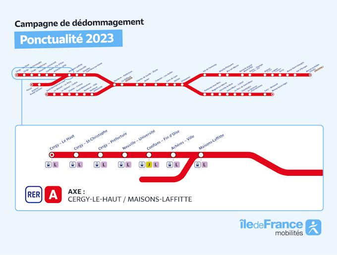 L'axe Cergy-le Haut / Maison-Laffitte inclut les gares de Cergy-le Haut, Cergy St-Christophe, Neuville - Université, Conflans - Fin d'Oise, Achères - Ville, Maisons-Laffitte