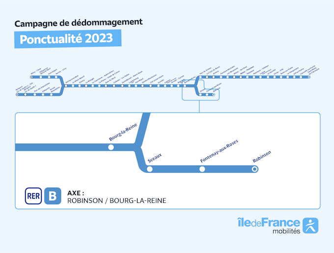 - Axe Robinson <> Bourg-la-Reine : 6 mois <80 % de ponctualité, soit un remboursement allant jusqu'à 1 fois le montant du forfait mensuel,
