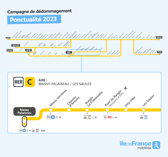 - Massy - Palaiseau <> Les Saules : année 2023 <85 % de ponctualité, soit un remboursement allant jusqu'à 0,5 fois le montant du forfait mensuel
