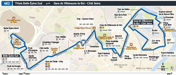 - la création d’un nouvel arrêt au sein de la zone d'activités de La Carrelle à Villeneuve-le-Roi et d'un nouveau terminus à proximité de la Gare de Villeneuve-le-Roi,