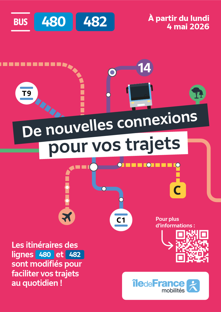 A compter du 4 mai 2026, les itinéraires des lignes 480 et 482 évoluent afin d’améliorer la desserte du territoire et des nouveaux modes de transports
