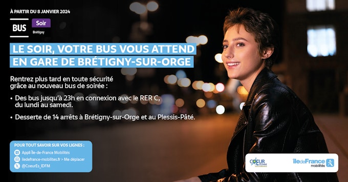- Un nouveau bus de soirée en gare de Brétigny-sur-Orge pour vos retours tardifs.
