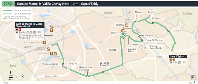 La ligne 2262 traverse la commune de Coupvray et assure une liaison vers/depuis les gares de Marne-la-Vallée Chessy (RER A) et d'Esbly (Ligne P).