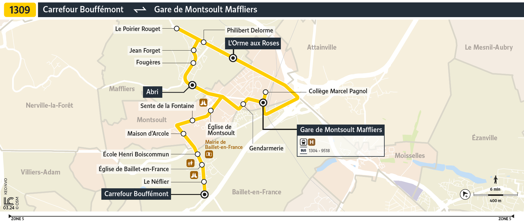 Ligne 1309 (ex 9509) - BOUFFÉMONT - Carrefour <> MONTSOULT - Gare de Montsoult Maffliers