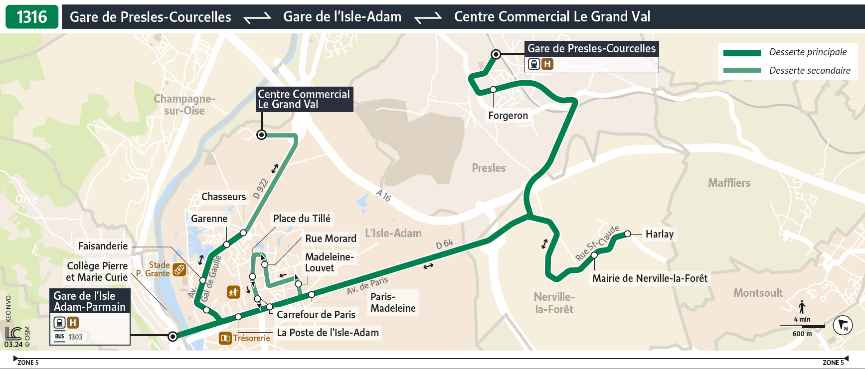 Ligne 1316 (ex 3036) - PRESLES - Gare de Presles <> L'ISLE-ADAM - Gare de L'Isle Adam Centre Commercial du Grand Val
