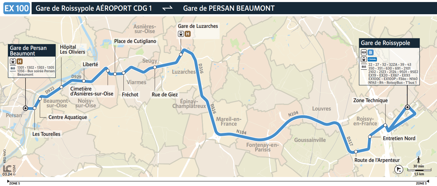 Ligne Express 100 - PERSAN-BEAUMONT - Gare de Persan-Beaumont <> TREMBLAY EN FRANCE - Gare de Roissypôle Aéroport CDG