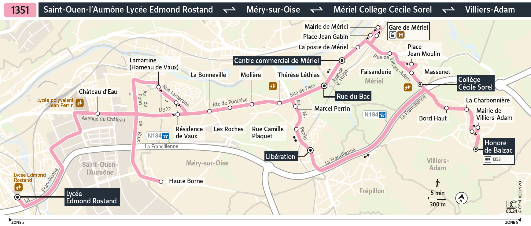 Ligne 1351 (ex 3025 + 3029) - ST-OUEN-L'AUMONE - Lycée Edmond Rostand <> MERY-SUR-OISE - Rue du Bac