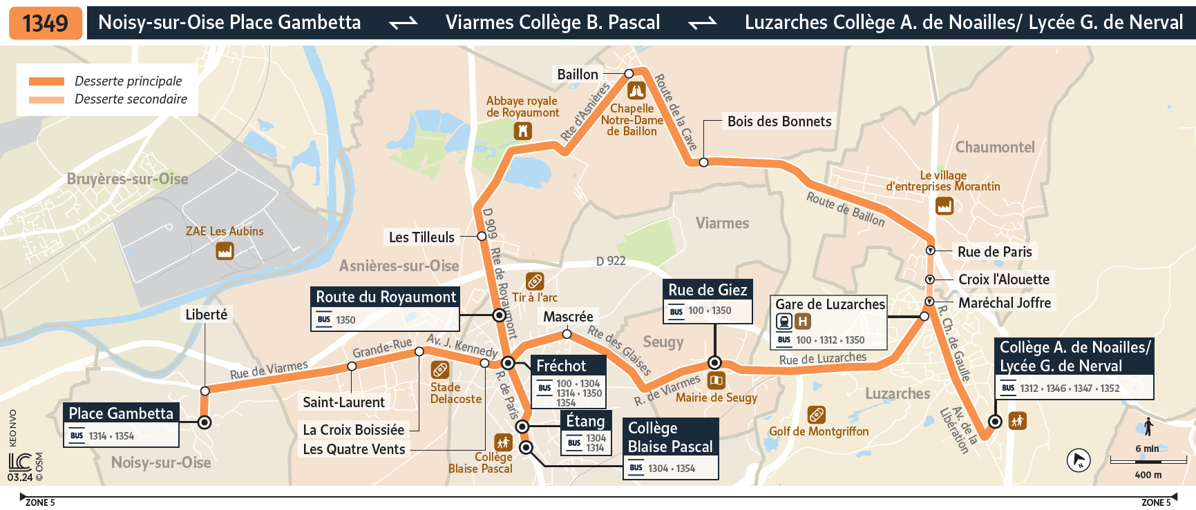 Ligne 1349 (ex 38 + 49) - NOISY-SUR-OISE - Place Gambetta <> LUZARCHES - Collège Anna de Noailles / Lycée Gérard de Nerval
