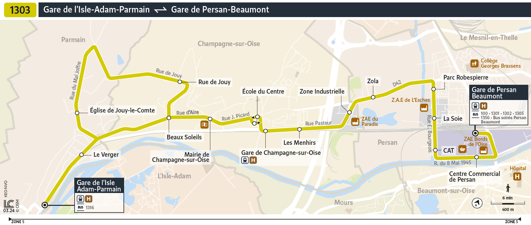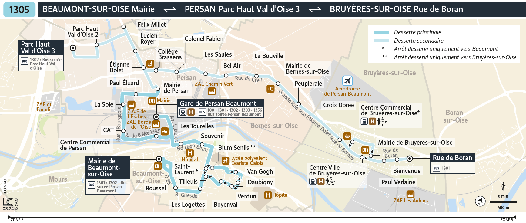 Ligne 1305 (ex DIM) - BEAUMONT-SUR-OISE - Mairie <> BRUYERES-SUR-OISE - Rue de Boran