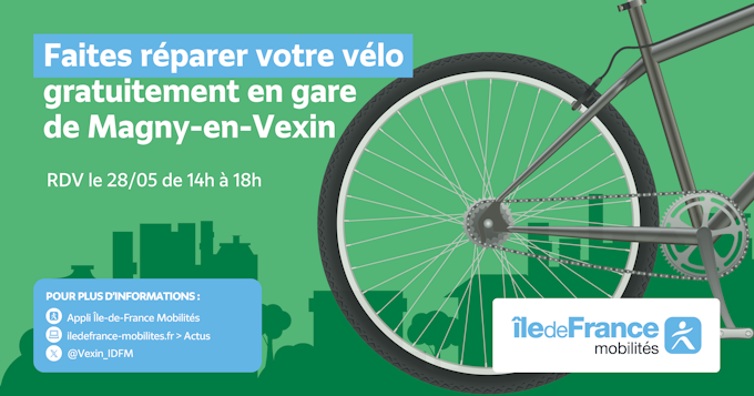 À l’occasion de la journée mondiale de la bicyclette 2024 le lundi 3 juin, Île-de-France Mobilités souhaite promouvoir et vous accompagner dans l’utilisation de ce mode de transport doux ! Ainsi, sur le territoire du Vexin, Île-de-France Mobilités organise des stands de réparation de vélos en gare.