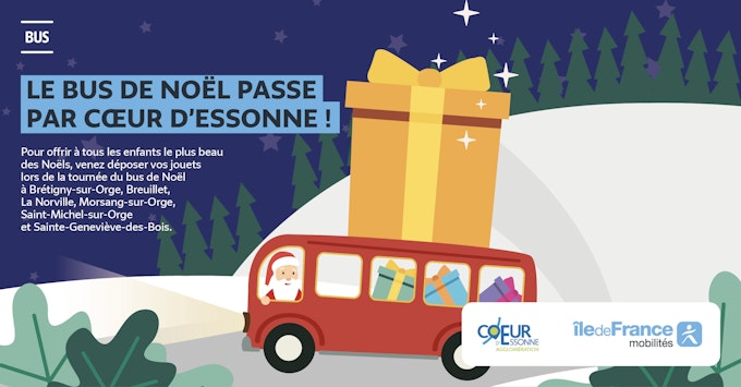 Comme chaque année à l’approche des fêtes, le territoire de Cœur d’Essonne du réseau de bus Île-de-France Mobilités repart en tournée pour une nouvelle collecte de jouets à bord du désormais célèbre Bus de Noël.