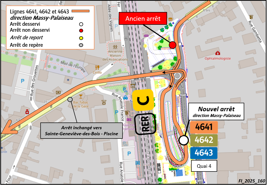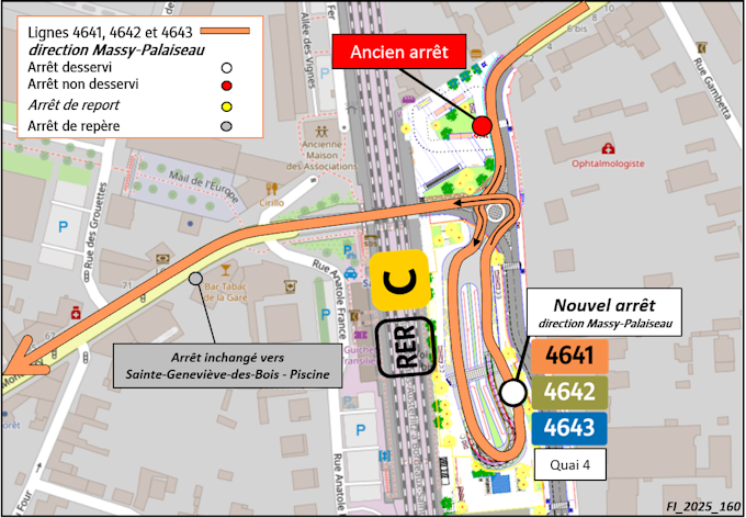 L'arrêt en direction de la Piscine de Sainte-Geneviève-des-Bois est inchangé.