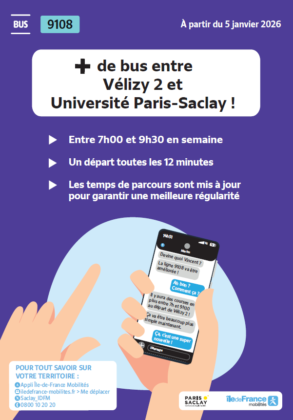 Plus de bus entre Vélizy 2 et Université Paris-Saclay avec la ligne 9108 !