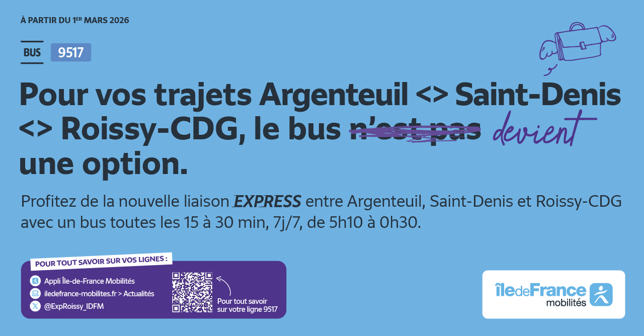 Avec la ligne Express 9517, direction l'aéroport Roissy - Charles de Gaulle !