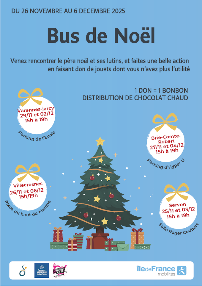 A l'approche des fêtes de fin d'année, Île-de-France Mobilités organise à nouveau une collecte de jouets à bord du Bus de Noël sur le territoire du Pays Briard !