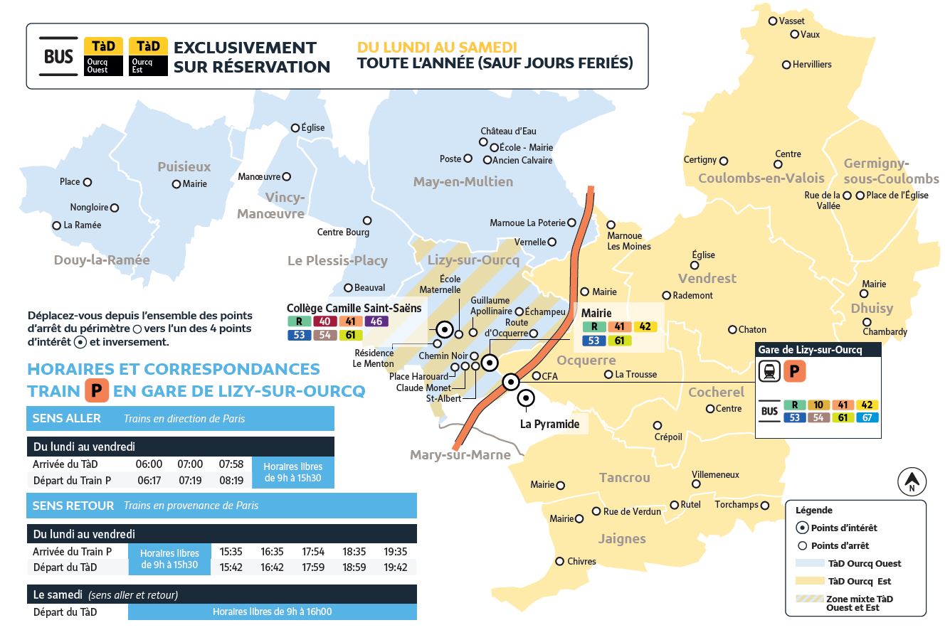 Le TàD Ourcq Ouest dessert les communes suivantes :