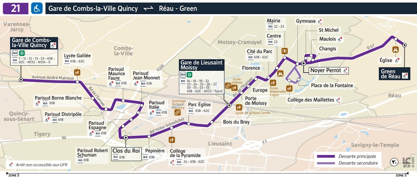 - Les correspondances avec le Tzen1 se feront dorénavant à la gare de Lieusaint-Moissy (au lieu de l’arrêt « Quatre Chemins »