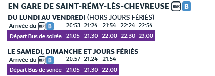 - Sans réservation, un départ toutes les 30 min vers l’ensemble des arrêts des communes de Saint-Rémy-lès-Chevreuse et de Chevreuse, avec la possibilité de descendre entre deux arrêts sur demande auprès du conducteur.