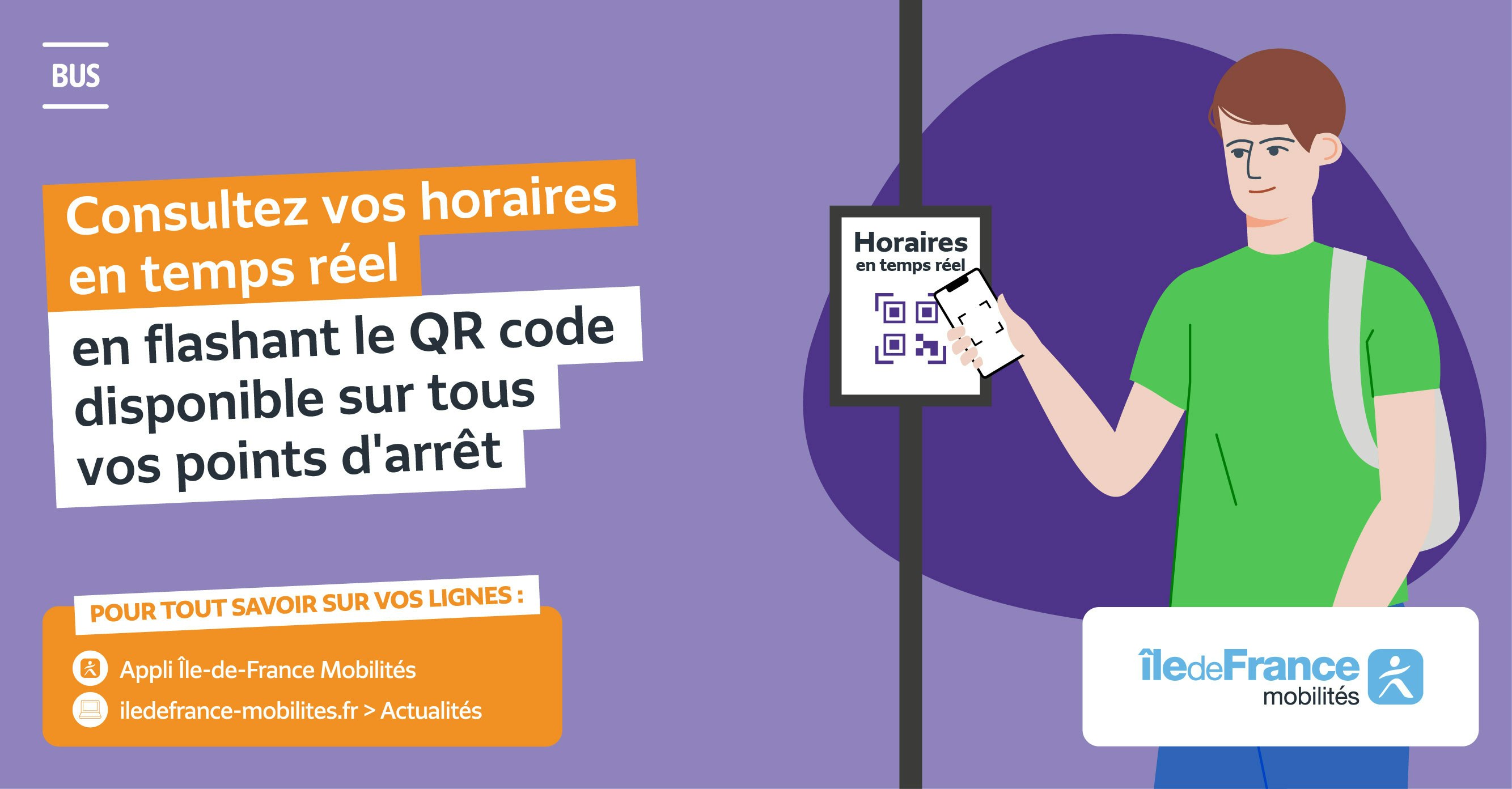 Pour calculer votre itinéraire, cherchez les horaires de passage de votre bus, consultez les infos trafic, téléchargez l'appli Île-de-France Mobilités !