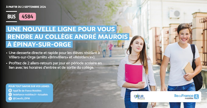 Une nouvelle ligne scolaire reliera la commune de Villiers-sur-Orge à celle d'Epinay-sur-Orge afin de desservir le collège d'André Maurois.
