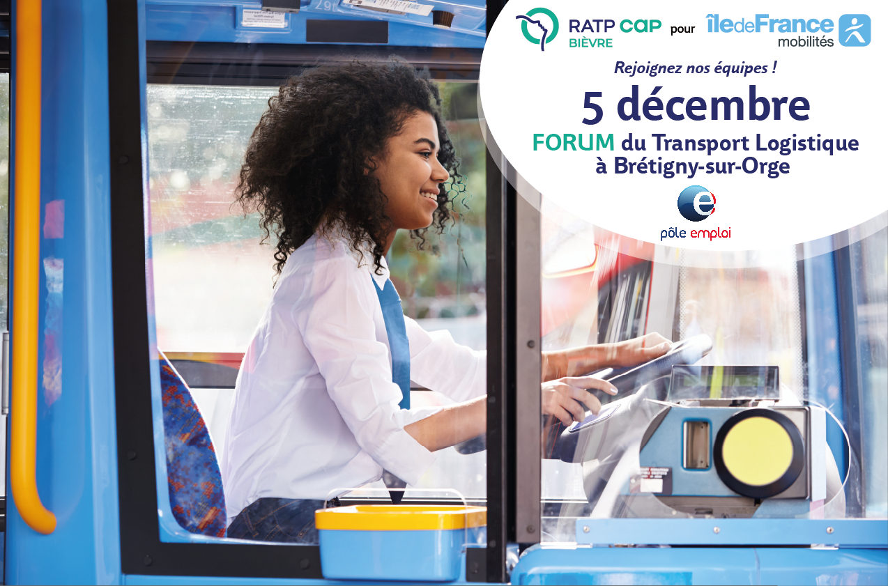 En tant qu'opérateur pour le compte d'Île-de-France Mobilités, nous aurons le plaisir de vous accueillir le 5 décembre au FORUM du Transport Logistique à Brétigny-sur-Orge en partenariat avec Pôle emploi.