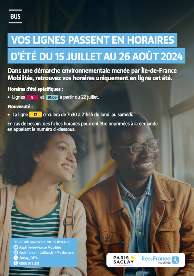 Veuillez noter que vos lignes 9 et 91.06 auront des horaires d'été qui commenceront le 22 juillet 2024.