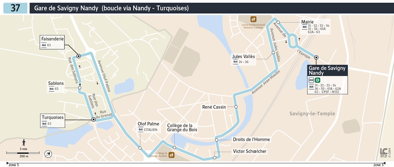 Les arrêts desservis sur Nandy sont les suivants : Faisanderie, Sablons, Turquoises.