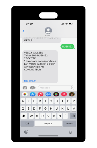 - Envoyer le code BUS + N° de la ligne au 93100 par SMS par exemple BUS6123, BUS6145