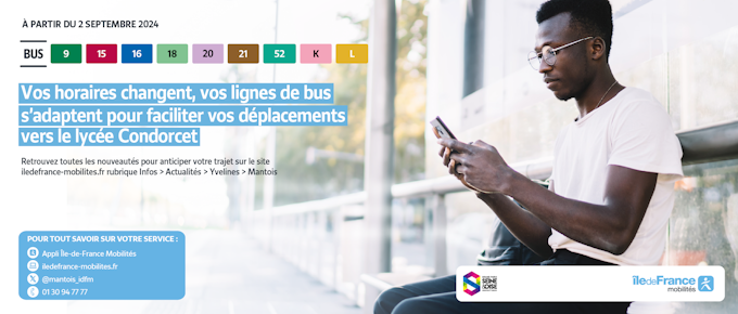 - Publié le - A partir du 2 septembre, vos horaires et itinéraires sont modifiés afin de faciliter vos déplacements depuis et vers le lycée Condorcet.