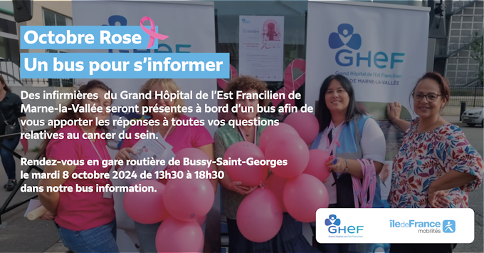 Le réseau de bus Île-de-France Mobilités du Territoire de Marne-la-Vallée s'associe au Grand Hôpital de l'Est Francilien de Marne-la-Vallée dans le cadre de l’opération Octobre Rose !