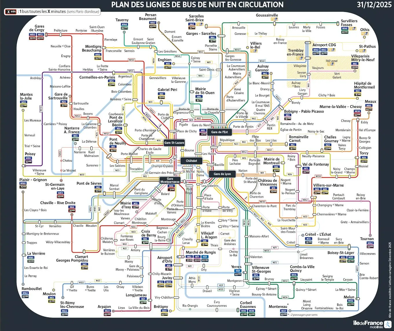 Pour la nuit du 31 décembre 2025 au 1ᵉʳ janvier 2026, les lignes de bus de nuit circuleront comme une nuit de week-end classique.