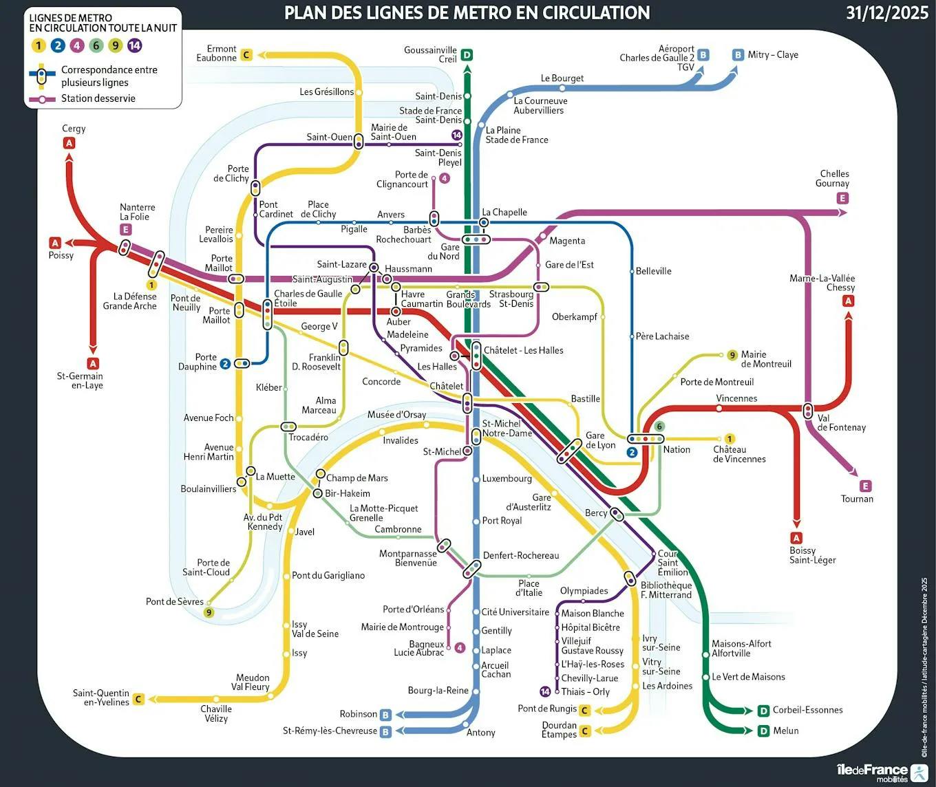 Voici les lignes en circulation toute la nuit et les stations qui seront desservies.