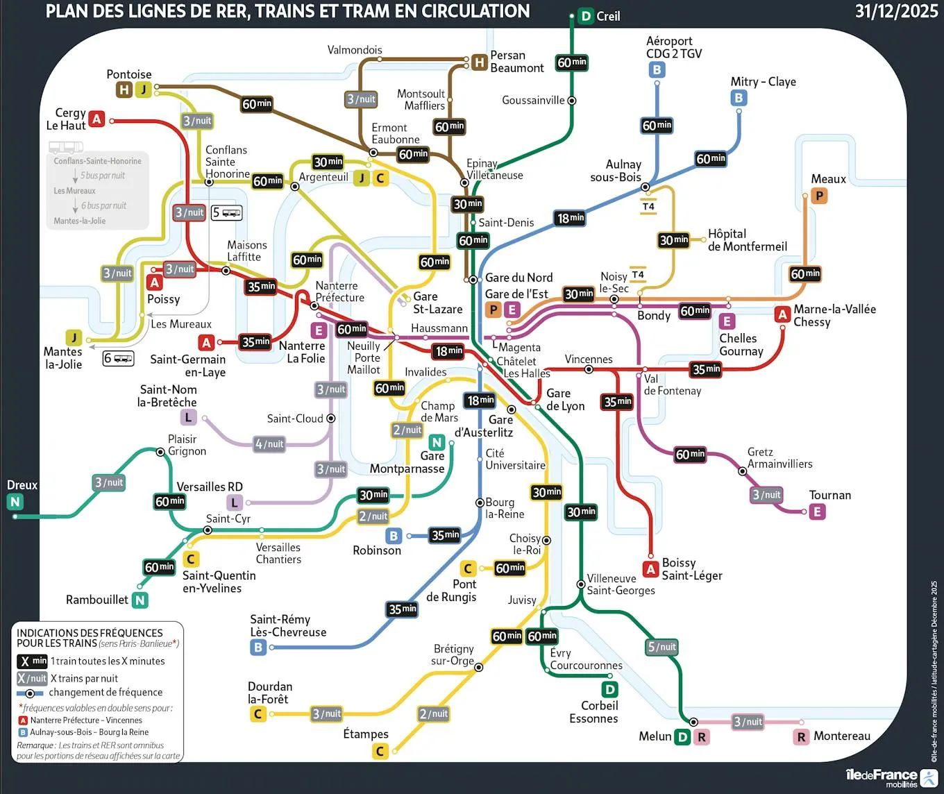Consultez le plan en détail pour connaître la fréquence des trains dans le sens Paris-Banlieue.