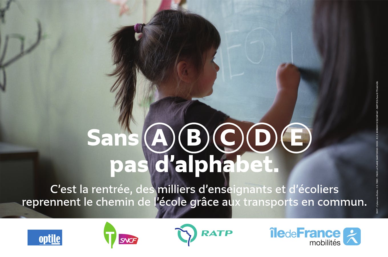 Sans (RER) A B C D E, pas d'alphabet. C'est la rentrée, des millier d'enseignants et d'écoliers reprennent le chemin de l'école grâce aux transports en commun.