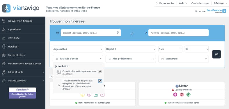 Vianavigo : une nouvelle version adaptée aux personnes à mobilité réduite, aux cyclistes et aux covoitureurs