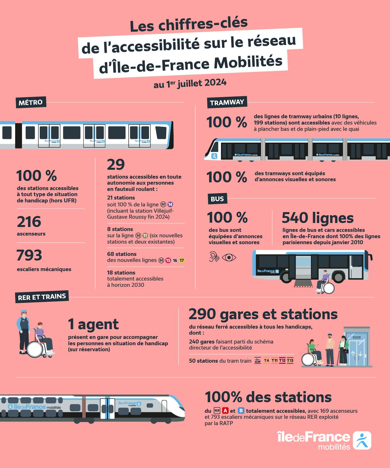 Im Bewusstsein der Schwierigkeiten, die Benutzer mit Behinderungen, insbesondere Rollstuhlfahrer, in öffentlichen Verkehrsmitteln haben können, verfolgt Île-de-France Mobilités eine langjährige Politik mit Benutzerverbänden, lokalen Behörden, der Region Île-de-France und ihren Betreibern, um das Netz der Île-de-France immer zugänglicher zu machen.