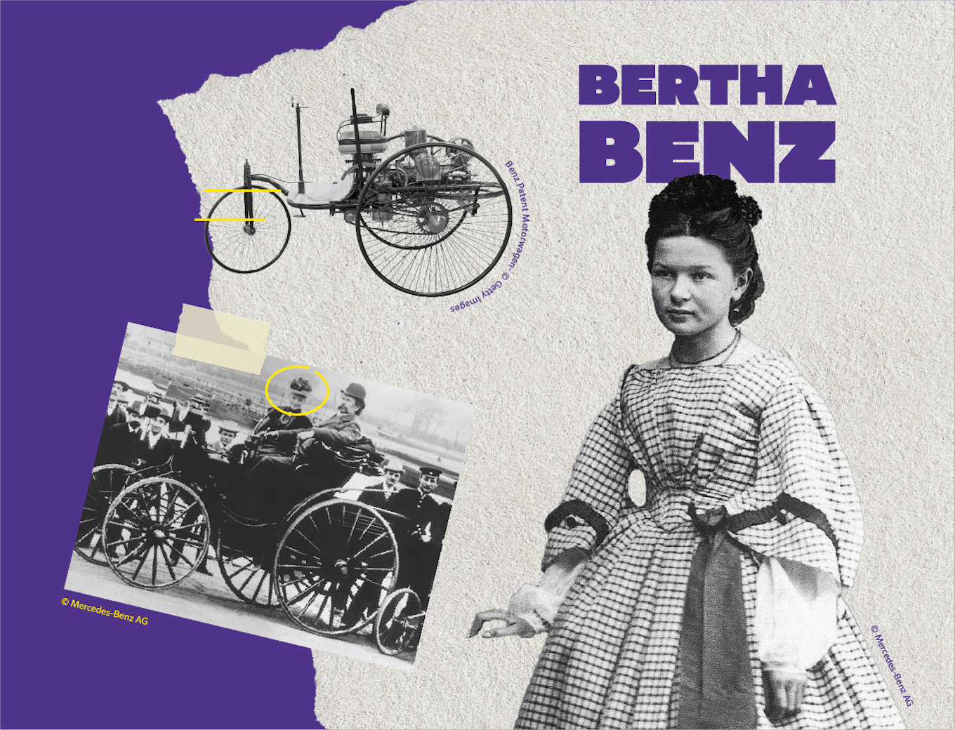 Bertha wurde 1849 in Deutschland geboren. Im Alter von 24 Jahren lernte sie Carl Benz kennen und heiratete ihn, der am ersten Modell eines Autos mit Verbrennungsmotor arbeitete.