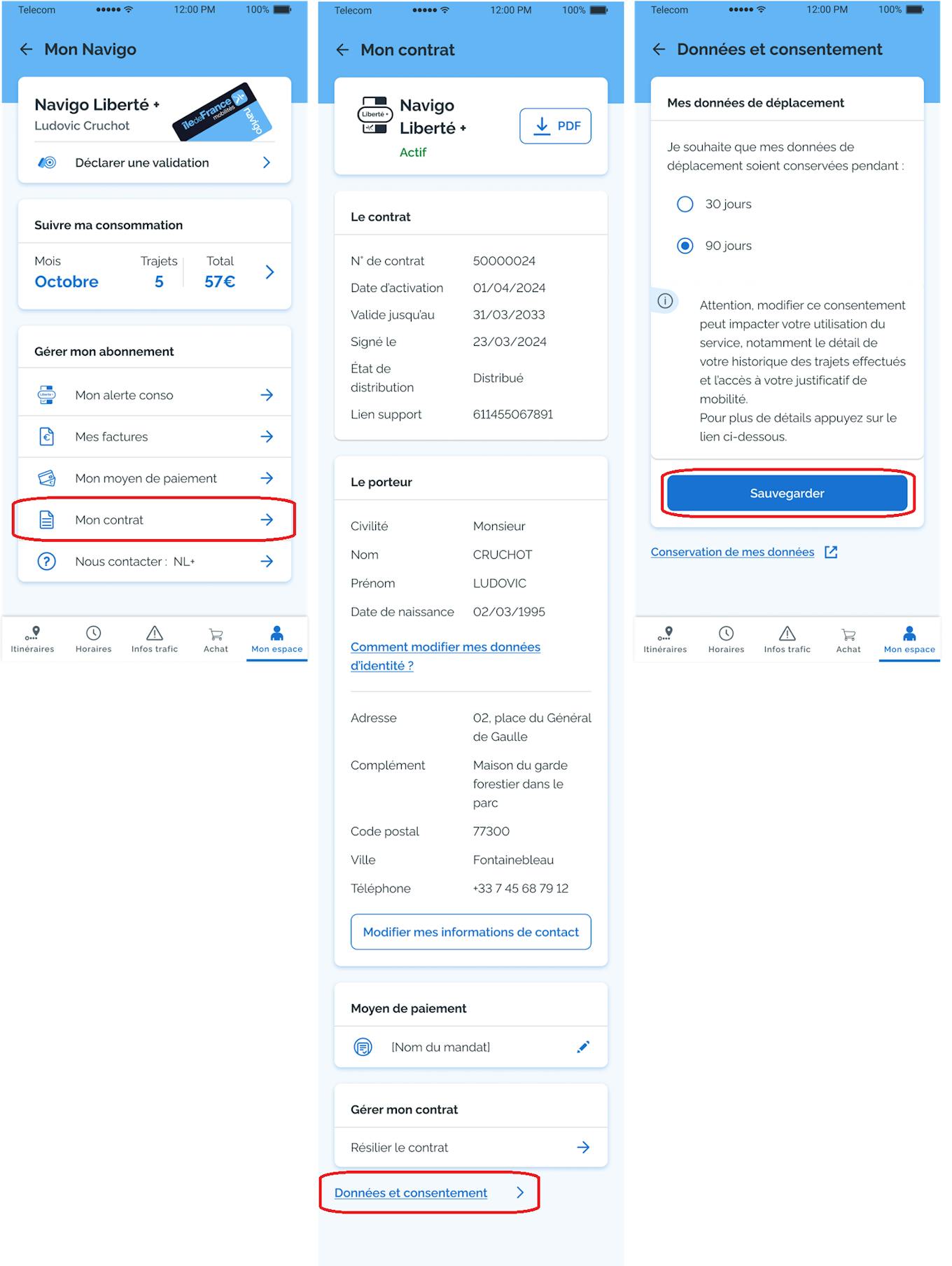 Sie können Ihre Zustimmung zur Aufbewahrungsfrist Ihrer Reisen ändern, indem Sie zu Ihrer Île-de-France Mobilités-Anwendung gehen: