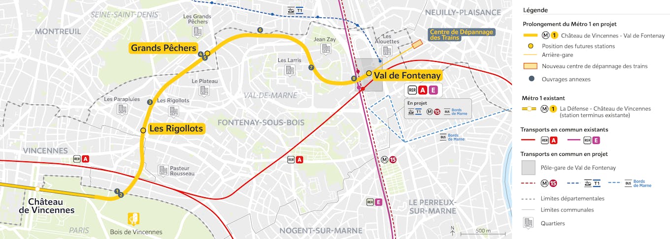 Die öffentliche Untersuchung zum Projekt zur Verlängerung der Linie 1 in Val de Fontenay fand vom 31. Januar bis 2. März 2022 unter der Schirmherrschaft einer unabhängigen Untersuchungskommission unter dem Vorsitz von Herrn Jean-Pierre Chaulet statt, die sich aus 4 Vollmitgliedern zusammensetzte: Herrn Jean-François Biechler, Herrn Jordan Bonaty, Herrn Alain Charliac und Frau Nicole Soilly. Vor der Erklärung der Gemeinnützigkeit stellte sie eine neue Phase der Öffentlichkeitsbeteiligung dar, die darauf abzielte:
