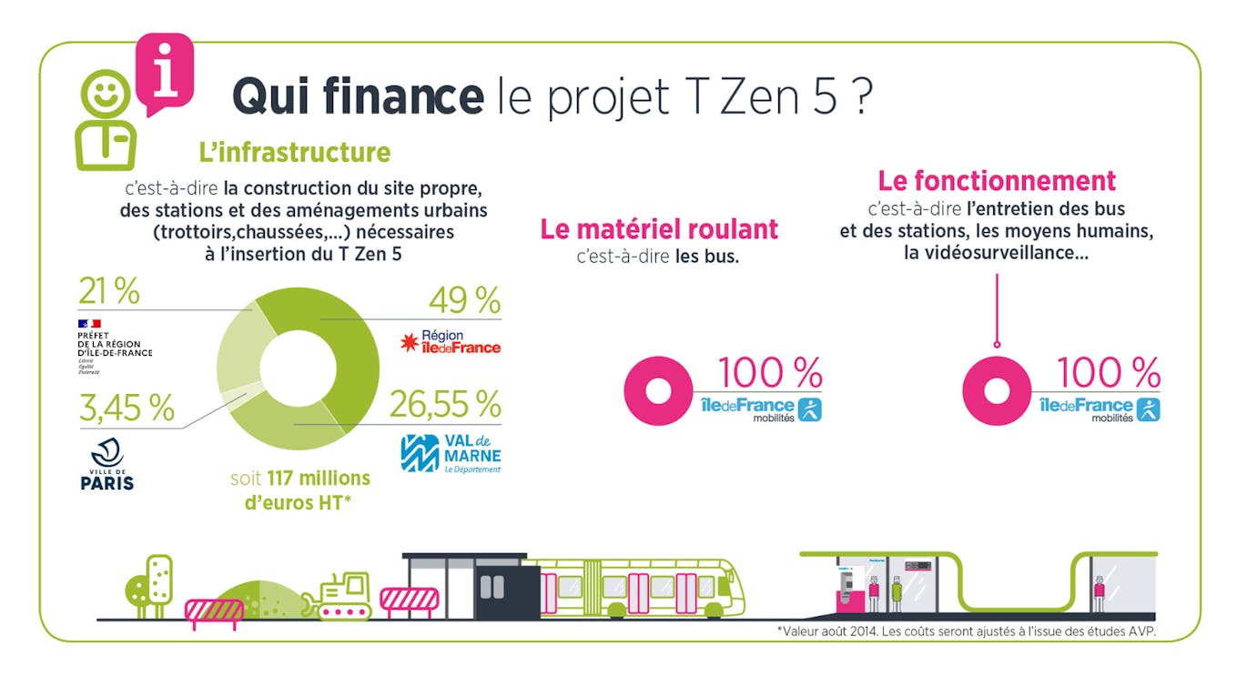 Die Île-de-France Mobilités finanziert den Kauf des rollenden Materials und dann den Betrieb der Linie Tzen 5.