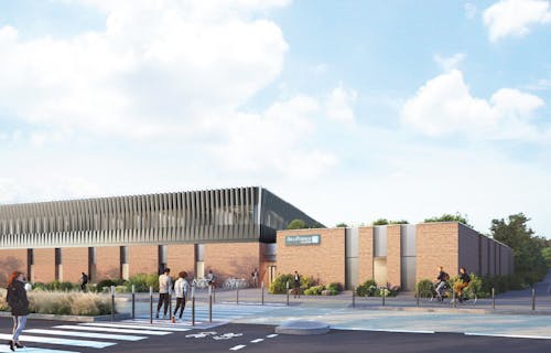 - Blick auf die Ostfassade des COB von der Kreuzung Avenue de Lugo/Ausfahrt der A86 Außervertragliche © Perspektive Egis Bâtiments / Richez Associés / Gamba