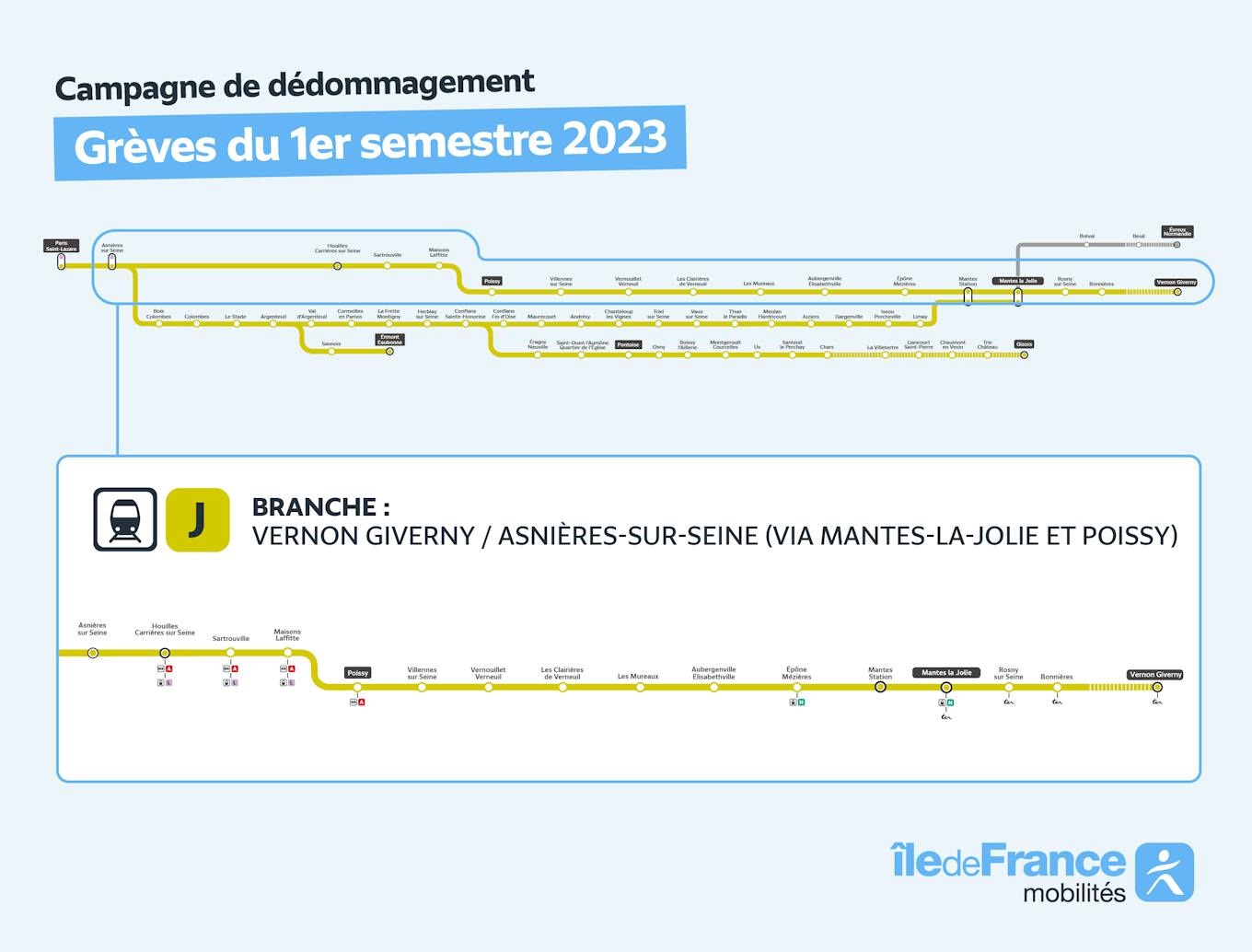 Remboursement suite aux grèves du premier semestre 2023 : branche Vernon Giverny / Asnières-sur-Seine (via Mantes-la-Jolie et Poissy) - Ligne J