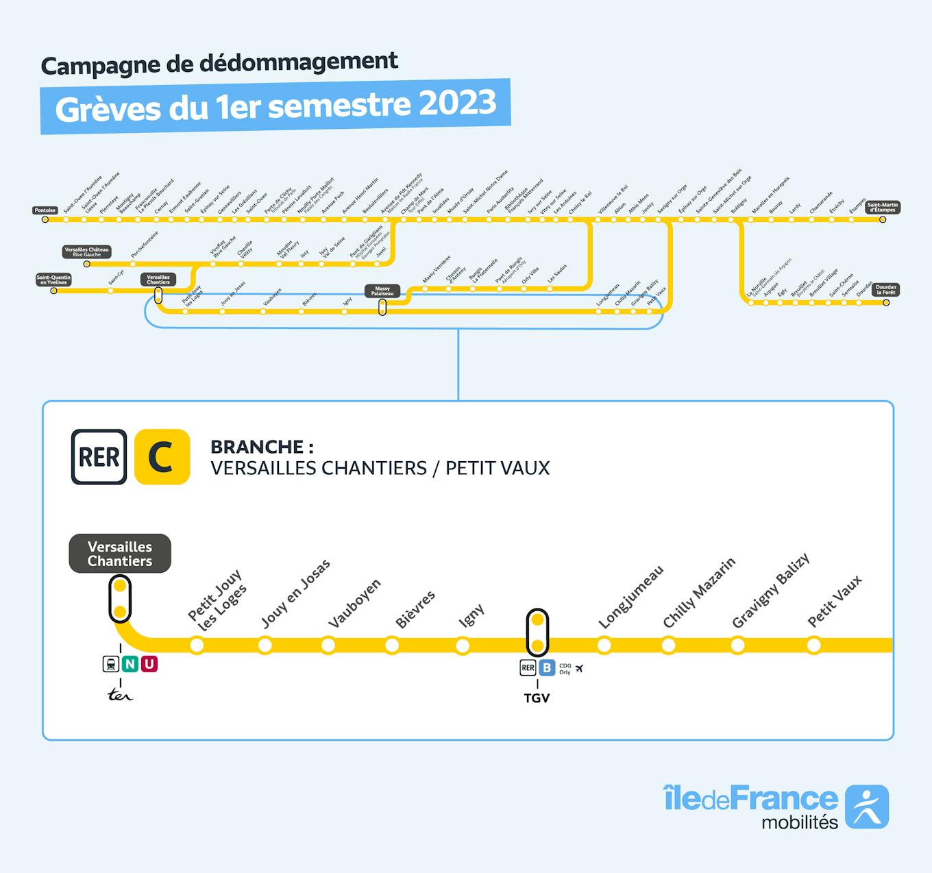 Remboursement suite aux grèves du premier semestre 2023 : branche Versailles Chantiers / Petit Vaux - RER C