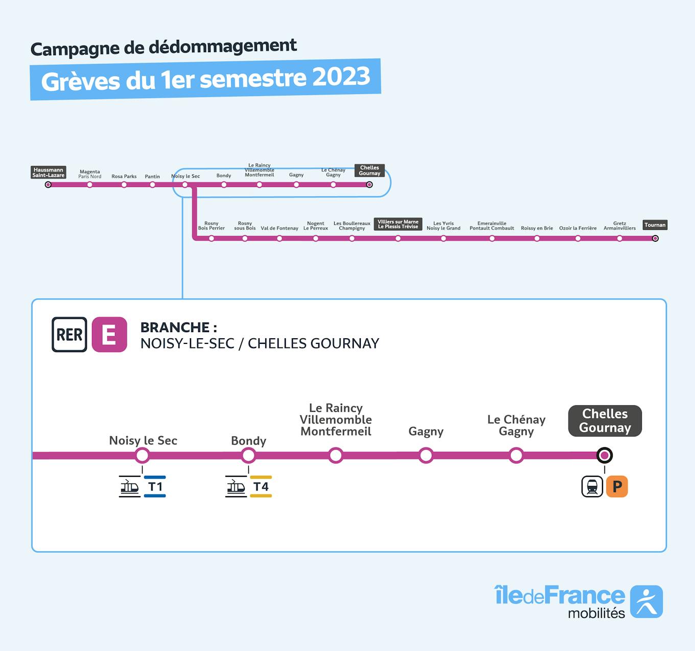Remboursement suite aux grèves du premier semestre 2023 : branche Noisy-le-Sec / Chelles Gournay - RER E