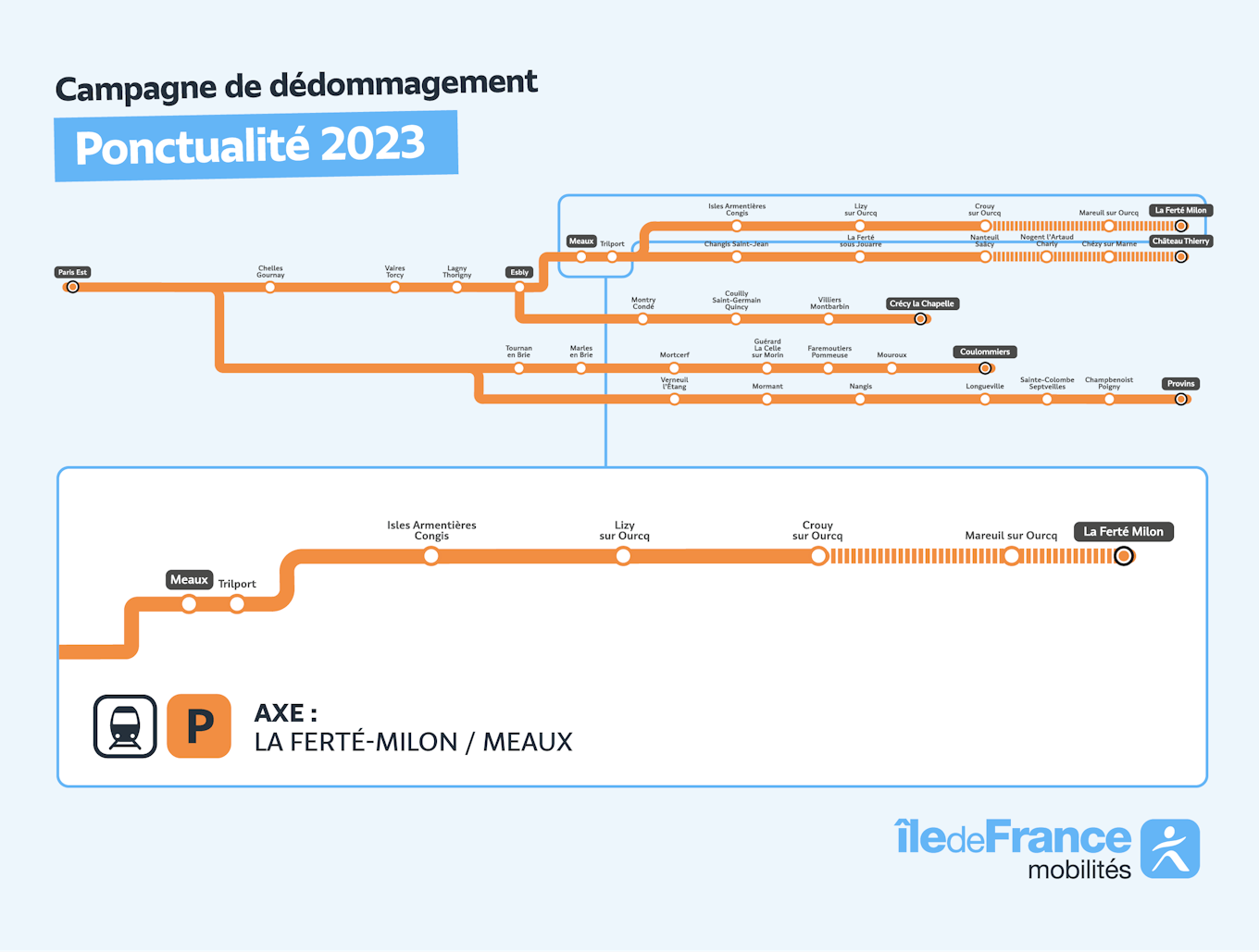 L’axe de la ligne P La Ferté-Milon / Meaux a cumulé 3 mois de ponctualité inférieure à 80% en 2023, ouvrant le droit à un remboursement.