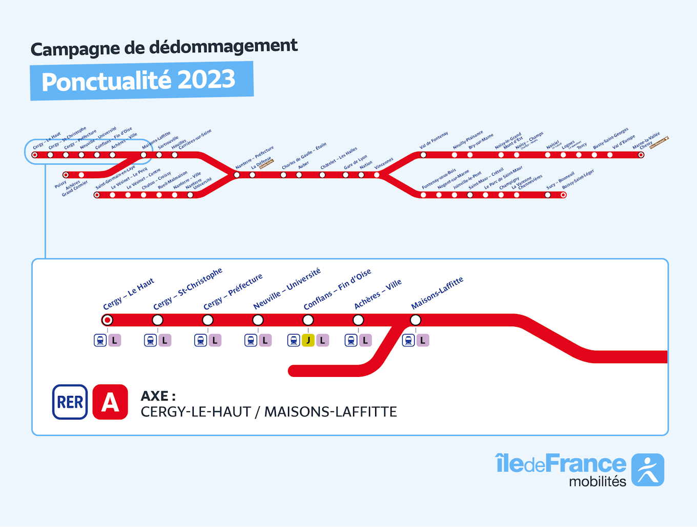 Le taux de ponctualité a été insatisfaisant durant 3 mois sur l’axe du RER A Cergy le Haut / Maisons-Laffitte en 2023. Vous devez avoir détenu au moins 3 mensualités de forfait parmi les mois concernés pour être éligible à un remboursement.