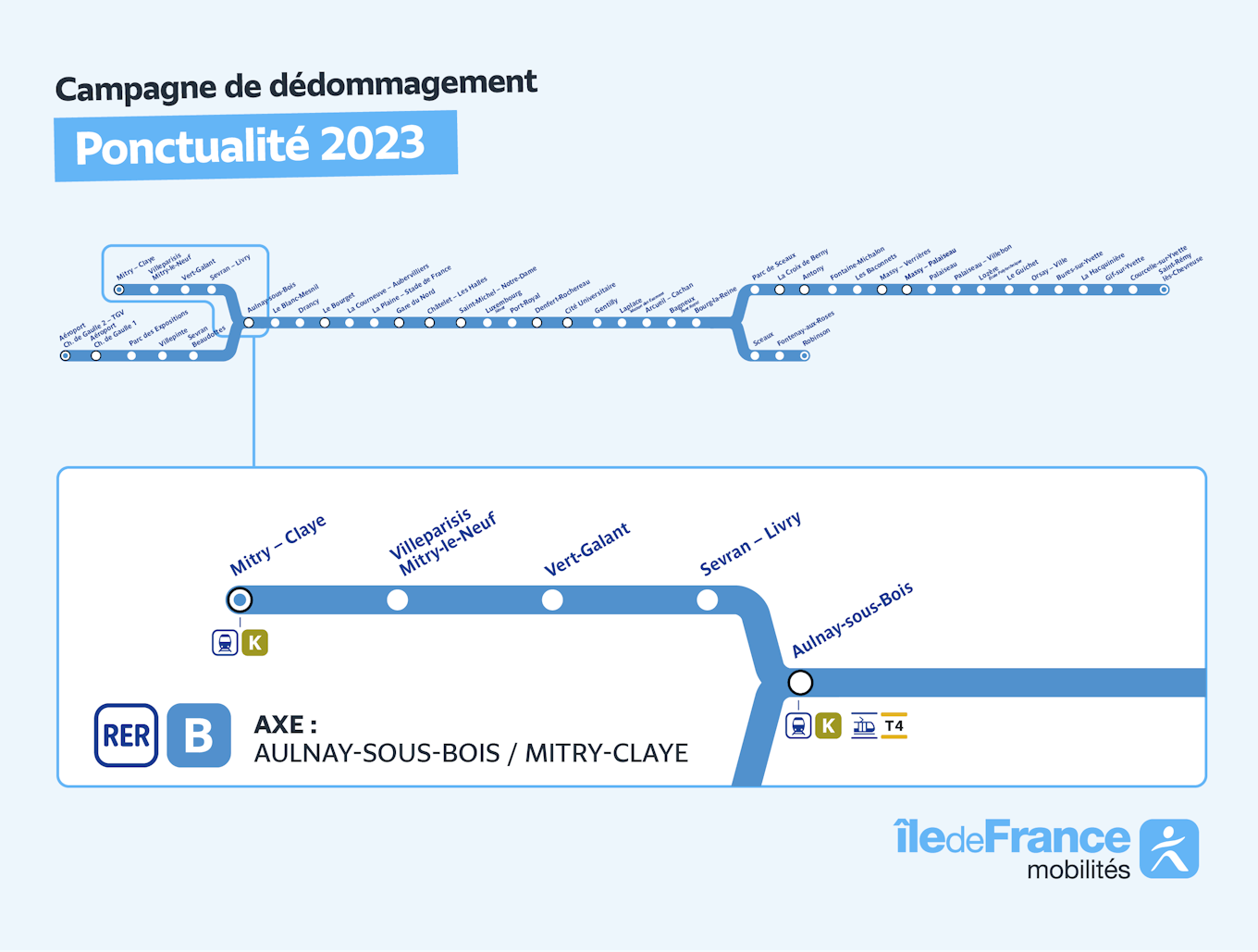 L’axe du RER B Aulnay-sous-Bois / Mitry-Claye a cumulé 10 mois de ponctualité inférieure à 80% en 2023, ouvrant le droit à un remboursement.