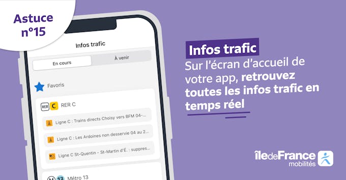 Receive a notification in the event of a change in traffic on your favorite lines? It's practical and with the Île-de-France Mobilités app, it's also possible.
