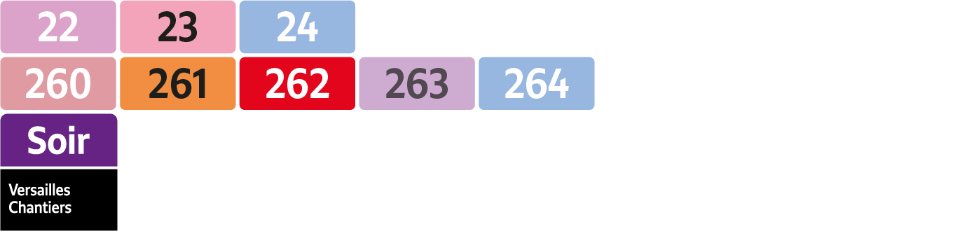 Vélizy Vallées - Indices of the regular lines linking the territory to Versailles (22, 23, 24, 260, 261, 262, 263, 264)
