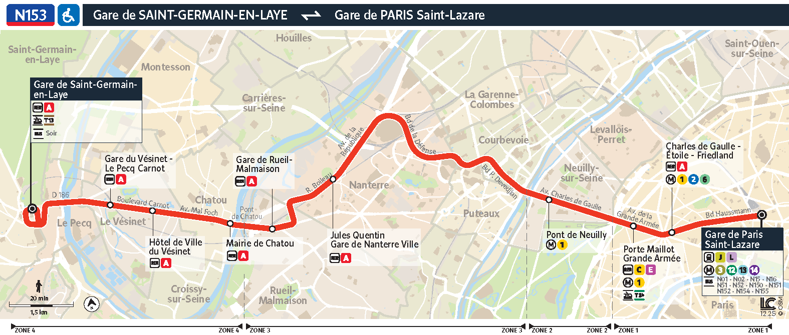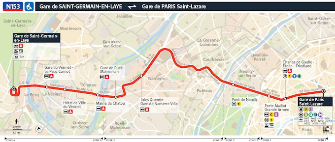 The N153 night bus between Paris Saint-Lazare and Saint-Germain-en-Laye